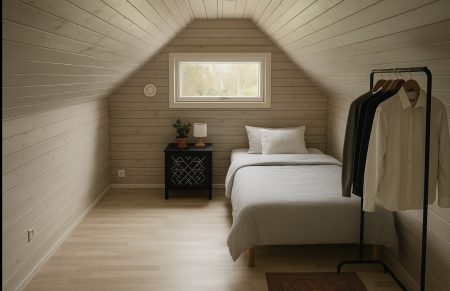 Det tredje rum er et funktionelt og hyggeligt 9 m² værelse, der kan bruges som gæsteværelse, arbejdskrog, walk-in-closet, kreativt rum eller praktisk opbevaring. Det er et af de rum, der hurtigt finder sin rolle efter behov og årstid.
