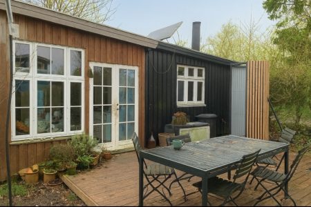 En hyggelig bålplads inviterer til aftener med ild, tæpper og snobrød, og et drivhus følger med, så du kan dyrke grøntsager, forspire eller forlænge sæsonen. Haven har en særlig ro og rummelighed, som gør den til et vidunderligt sted at være – både alene og sammen med andre.